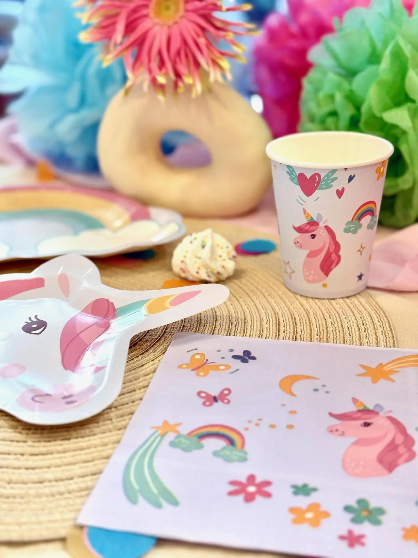 Des licornes magiques et des couleurs arc-en-ciel pour une fête féérique et joyeuse. Une collection idéale pour émerveiller les enfants.