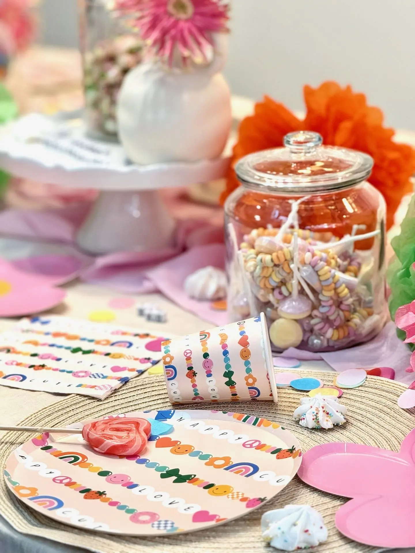 Une explosion de couleurs et de bonne humeur ! La collection Happiness crée une ambiance joyeuse et festive, idéale pour les anniversaires et goûters d’enfants.